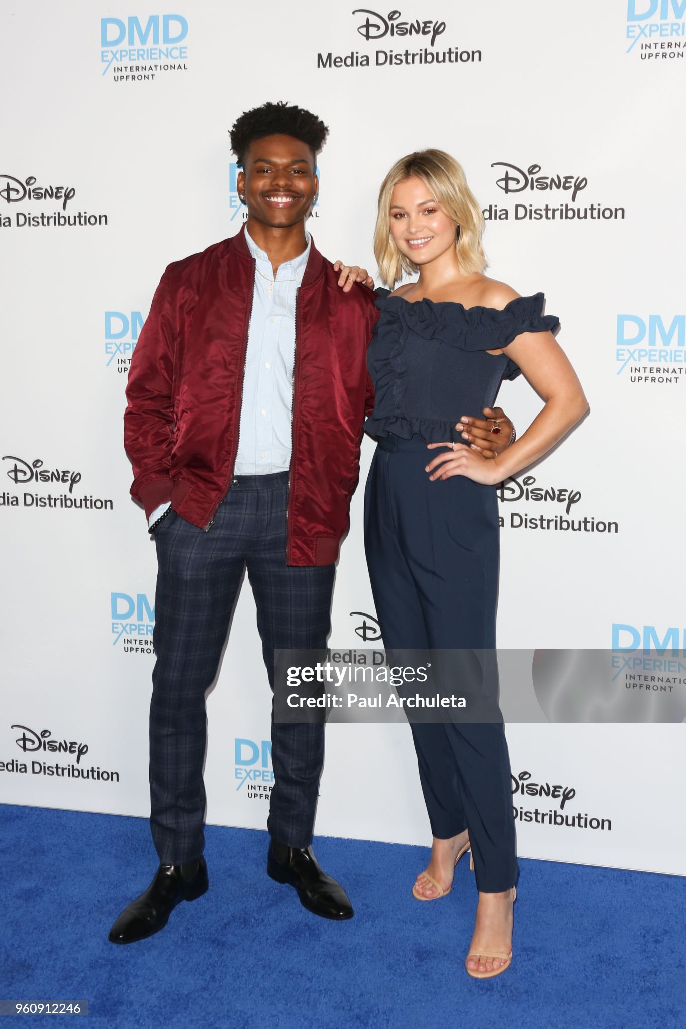 BURBANK, CA - MAY 20: Actor Aubrey Joseph (L) and Olivia Holt (R) attend the Disney/ABC International Upfronts at the Walt Disney Studio Lot on May 20, 2018 in Burbank, California. (Photo by Paul Archuleta/FilmMagic)